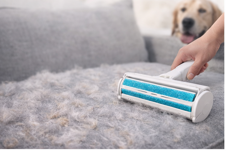 Pet hair stuck everywhere? FurAway Roller removes it in seconds — no refills, no mess.
